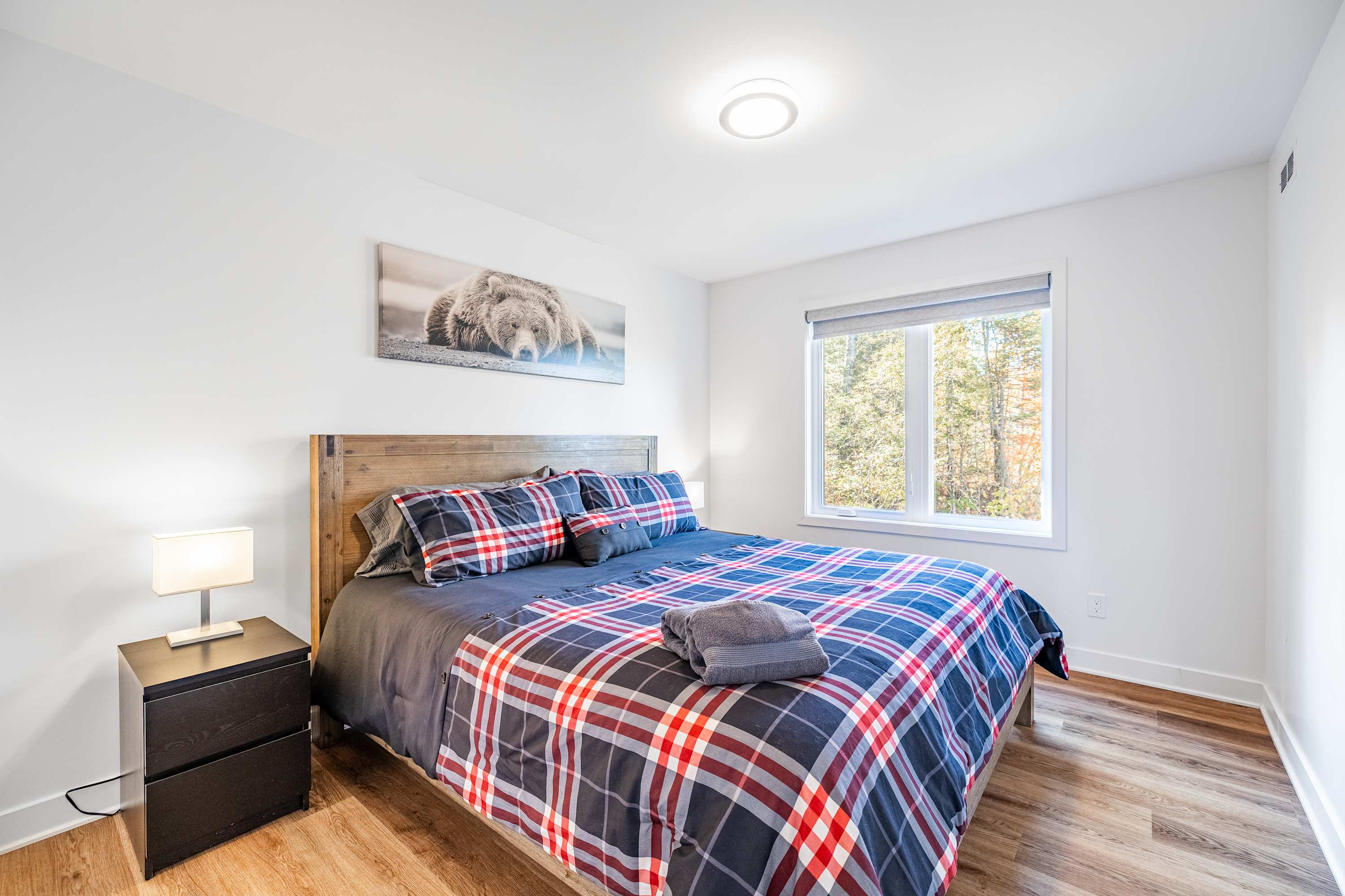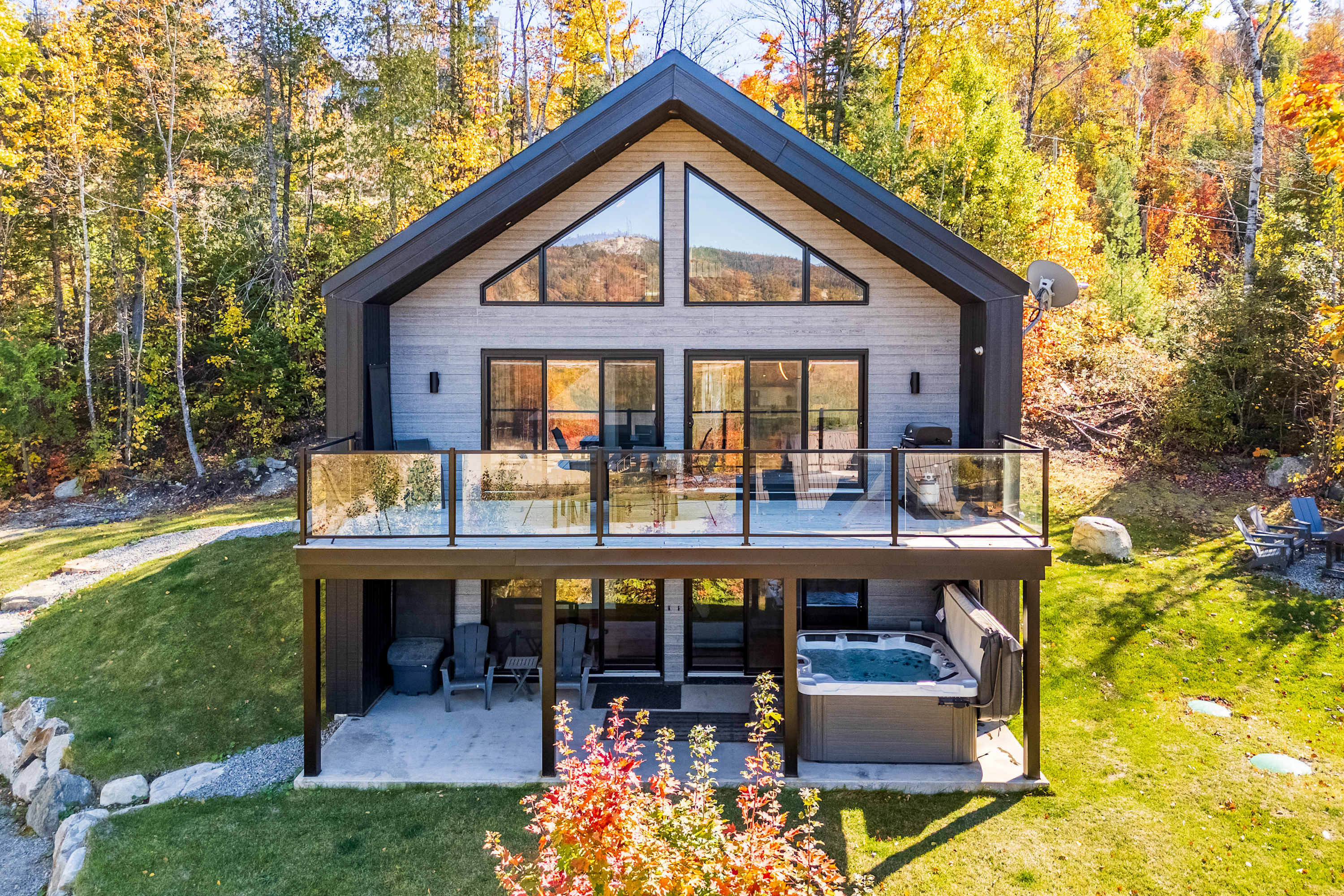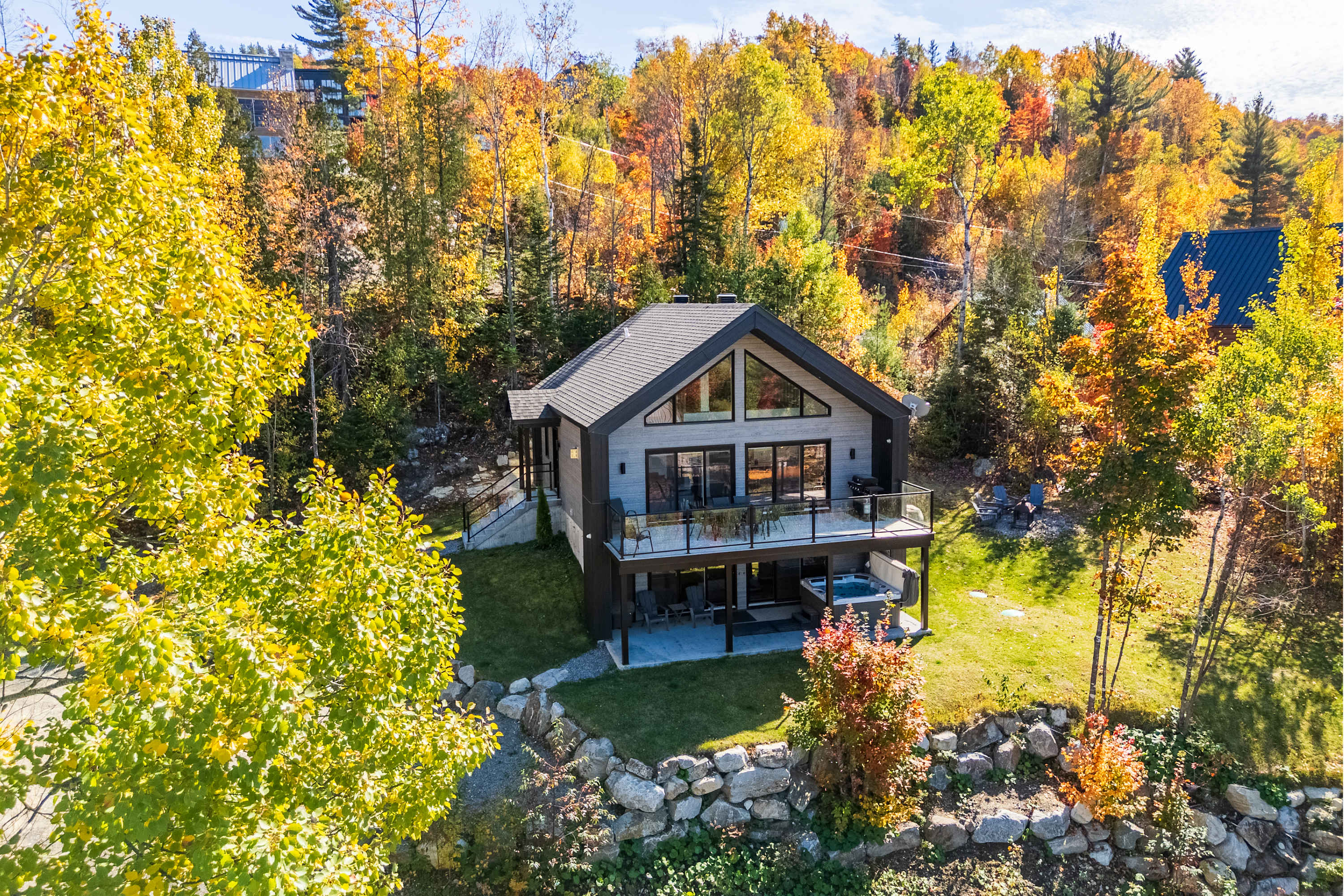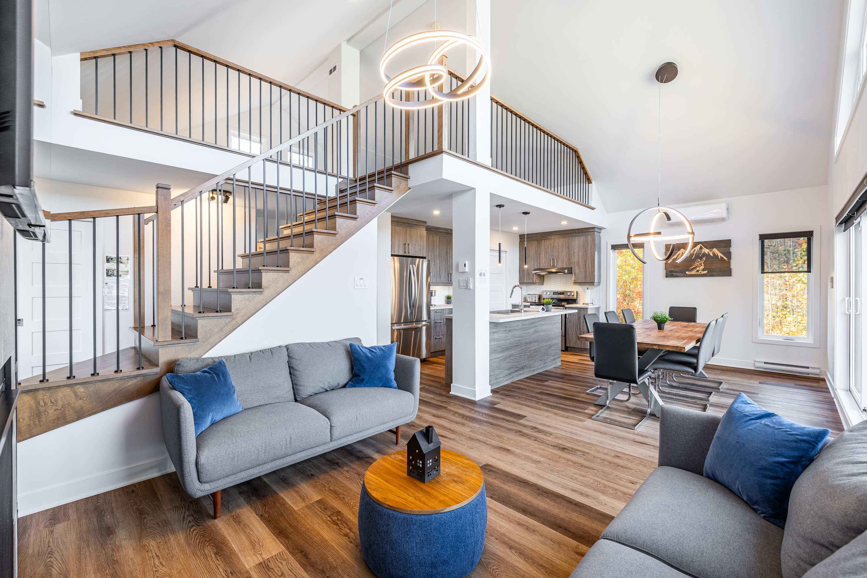 Avec son spa privé, ce chalet est parfait pour se détendre après une journée d'aventures en montagne. À proximité des pistes de ski et d’un lac, il offre une immersion totale dans la nature. La terrasse avec vue panoramique permet de profiter de vues magnifiques sur les montagnes, et l’espace extérieur avec feu de camp est idéal pour des soirées conviviales. L’intérieur, lumineux et chaleureux, est complété par un foyer au propane pour plus de confort. Que ce soit pour une escapade en famille, en couple ou entre amis, le chalet "Petit Cerf" vous promet des souvenirs mémorables. De plus, le chalet offre une connexion internet haut débit de 3 Gbps, parfait pour le télétravail.